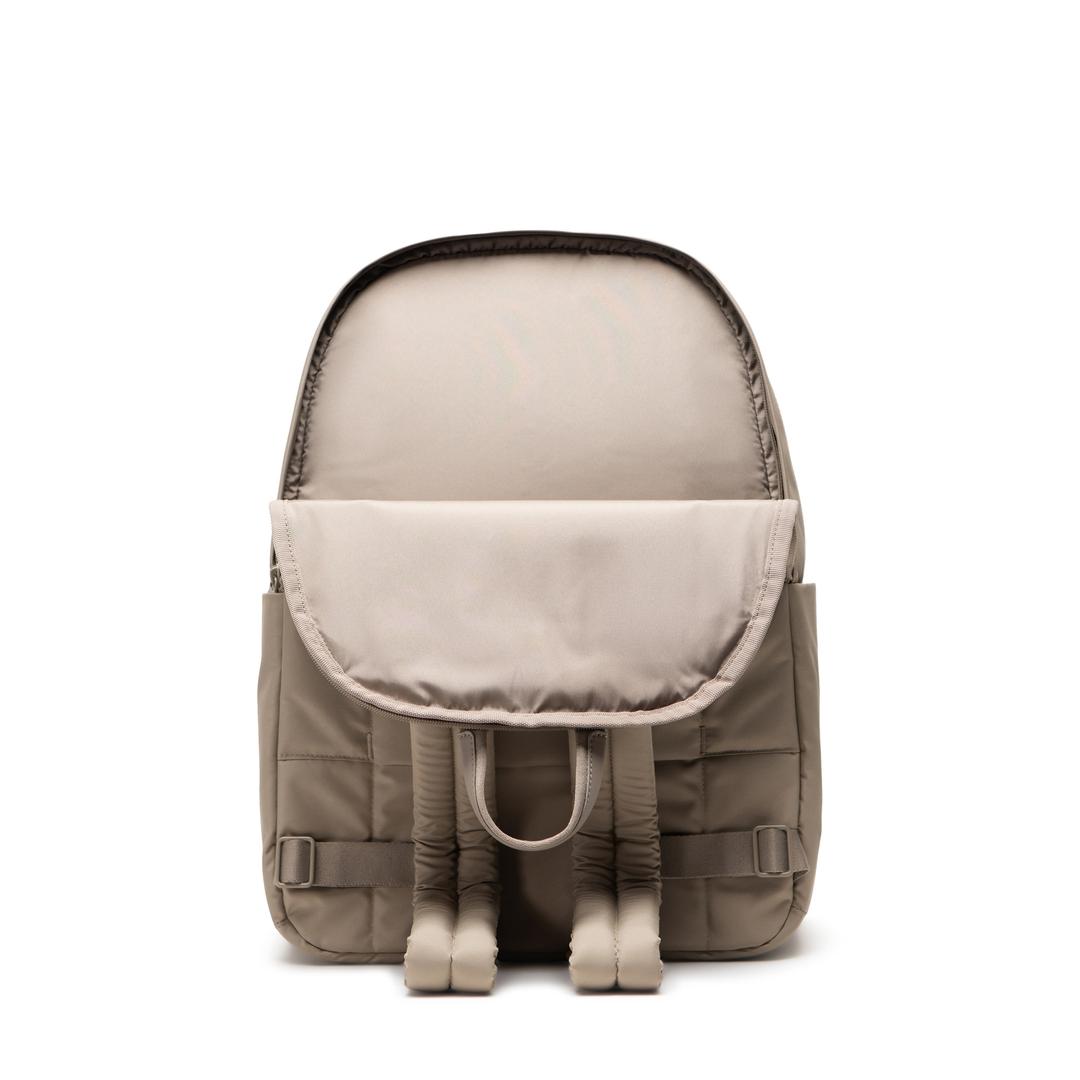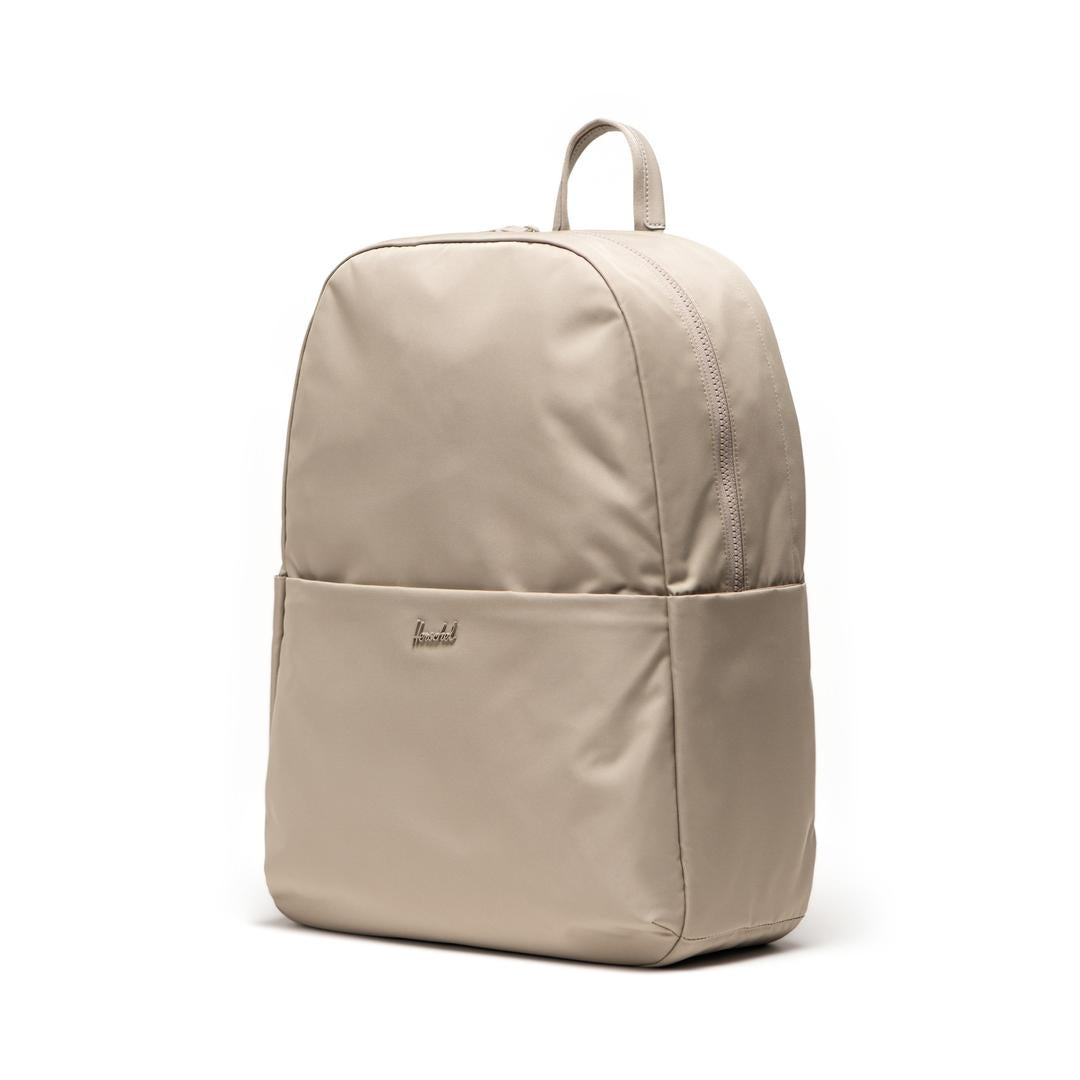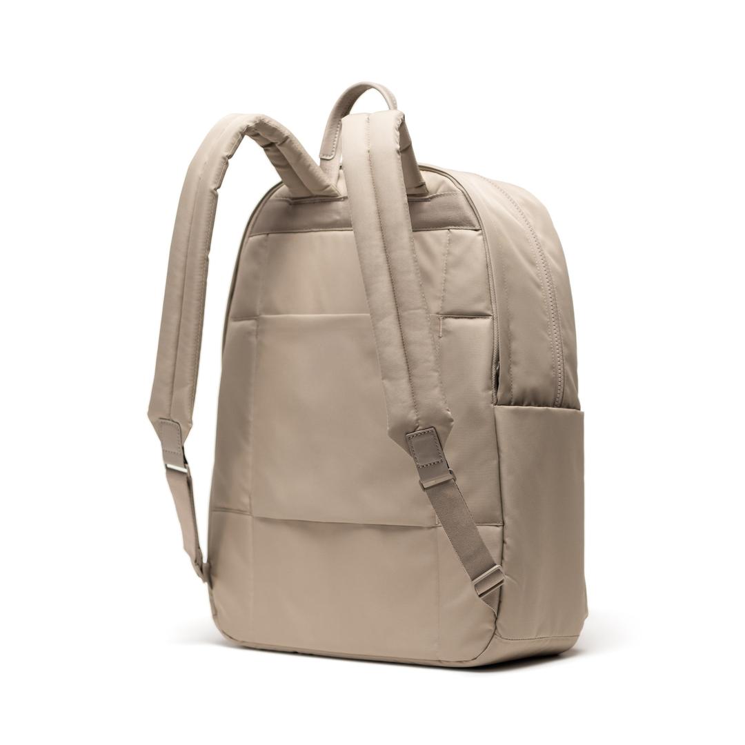 -100% recycled polyester, excluding trims-Genuine leather trims-Liner made from 100% recycled polyester, excluding trims-Smooth webbing details-Padded 15"/16" laptop sleeve-Zippered closures-Adjustable padded shoulder straps-Zippered front pocket-Water bottle pockets-Rear luggage trolley sleeve-Detachable internal pouch-Internal organizer pockets-Herschel metal logo-Internal Herschel Supply label----- Modern form, maximum function. Made with twill fabric and genuine leather trims, the Beatrix Backpack is packed with design fundamentals like a padded laptop sleeve, detachable pouch and trolley sleeve for everyday journeys.